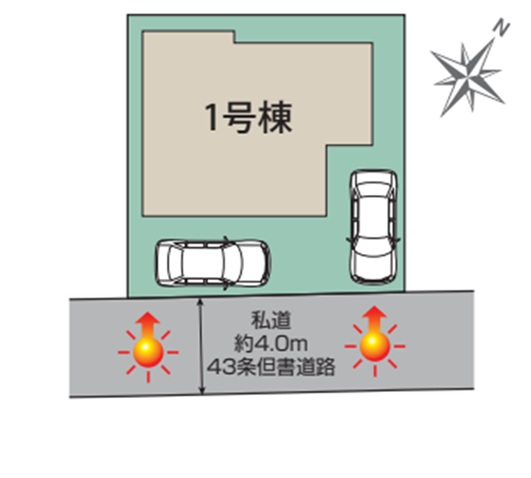 - 南側4.0m 私道43条但し書き道路